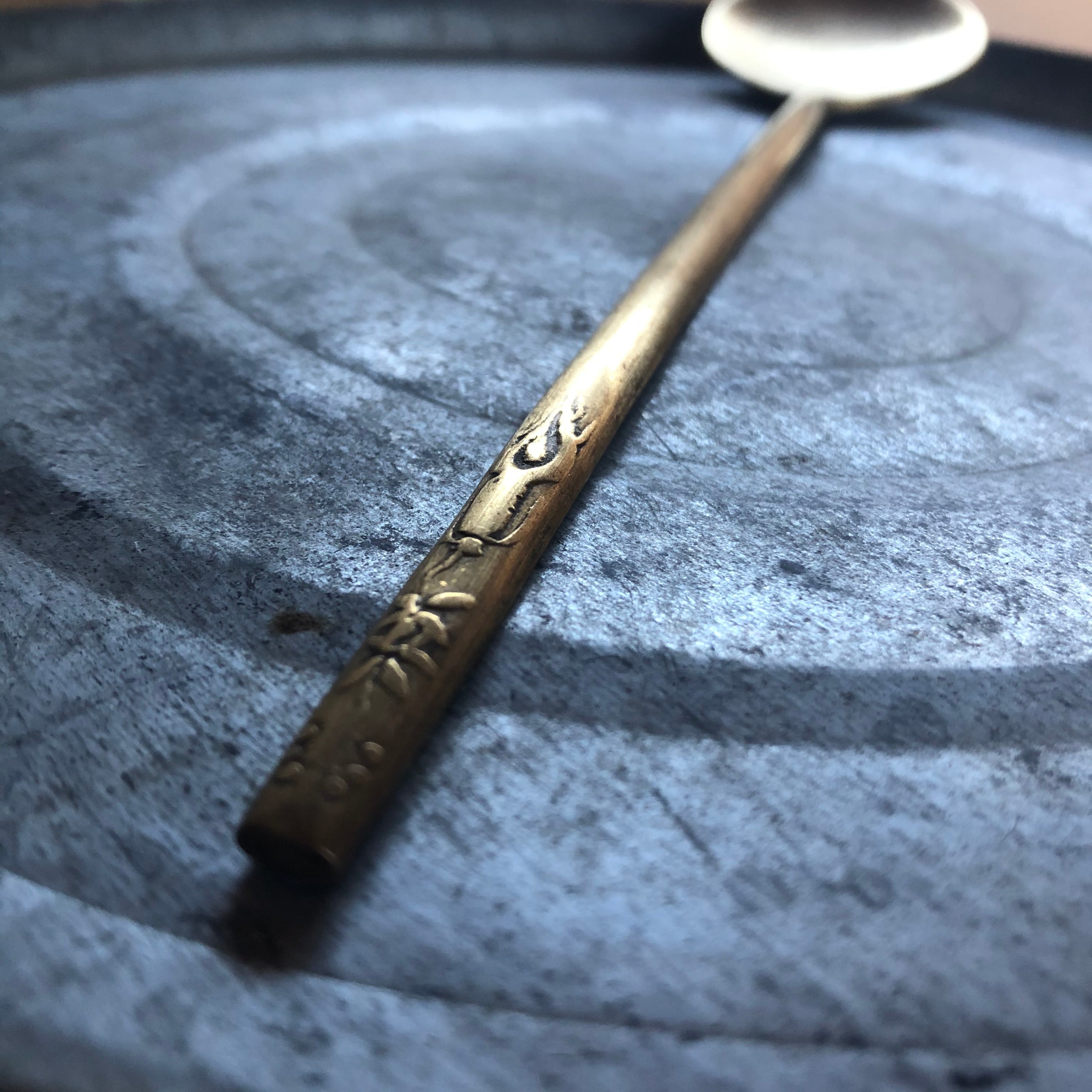 柄の部分に彫られた植物の様な柄がポイント。(私には植物に見えるのですが、皆さまは何柄に見えますか・・・?)
